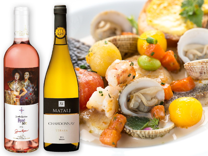 U obzir dolazi i punije belo vino, poput šardonea Terasa 2013 vinarije Matalj. Punog tela, raskošnog mirisa zrelog voća, lešnika i tosta i veoma sočno u ustima biće odlična podloga za slasni saft i komade ribe sa ajoli sosom.