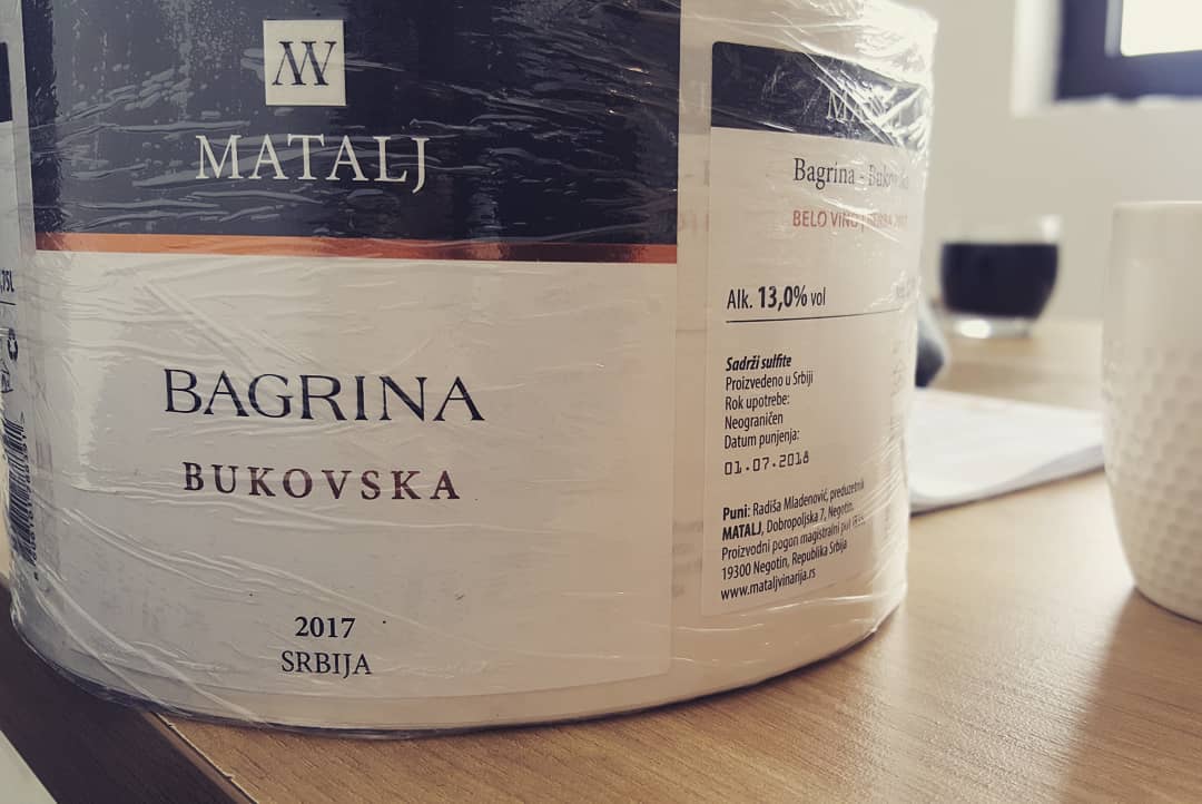 Večera je počela bagrinom, koja je stigla kao aperitiv, ali je ispratila i prvi tanjir – savršeno poširano žumance u ljusci, posluženo sa kriškom svežeg belog tartufa. I bez takvog jela, degustacija bagrine krajnje je uzbudljiva, jer ne znate šta vas čeka u čaši, pošto je veoma malo onih koji sa tom sortom imaju ikakvo iskustvo. Bagrina je gotovo iščezla iz vinograda, a ono što se po domaćinstvima u Negotinskoj krajini nalazilo poslednjih decenija bila su uglavnom vina veoma oksidativnog karaktera. Takođe, ta vina iz domaće radinosti najčešće su bila bakarne boje, jer bagrina ima tamno obojene bobice, poput pino griđa, pa u dužem kontaktu šire sa pokožicom uvek daje duboke tamne nijanse. Specifičan karakter takvih vina bio je pojačan i upečatljivom, ponekad grubom, fenolnom strukturom. Danas, bagrine u tragovima ima tek u nekoliko starih vinograda i jednom jedinom mladom, u vlasništu vinarije Matalj. Njihova bagrina je verovatno prva rađena modernom, reduktivnom tehnologijom. Nikola Matalj i enolog Mladen Dragojlović odlučili su da fermentaciju izvedu divljim kvascima, što je svakako ostavilo trag na aromatici, odnosno dodalo vinu na kompleksnosti.