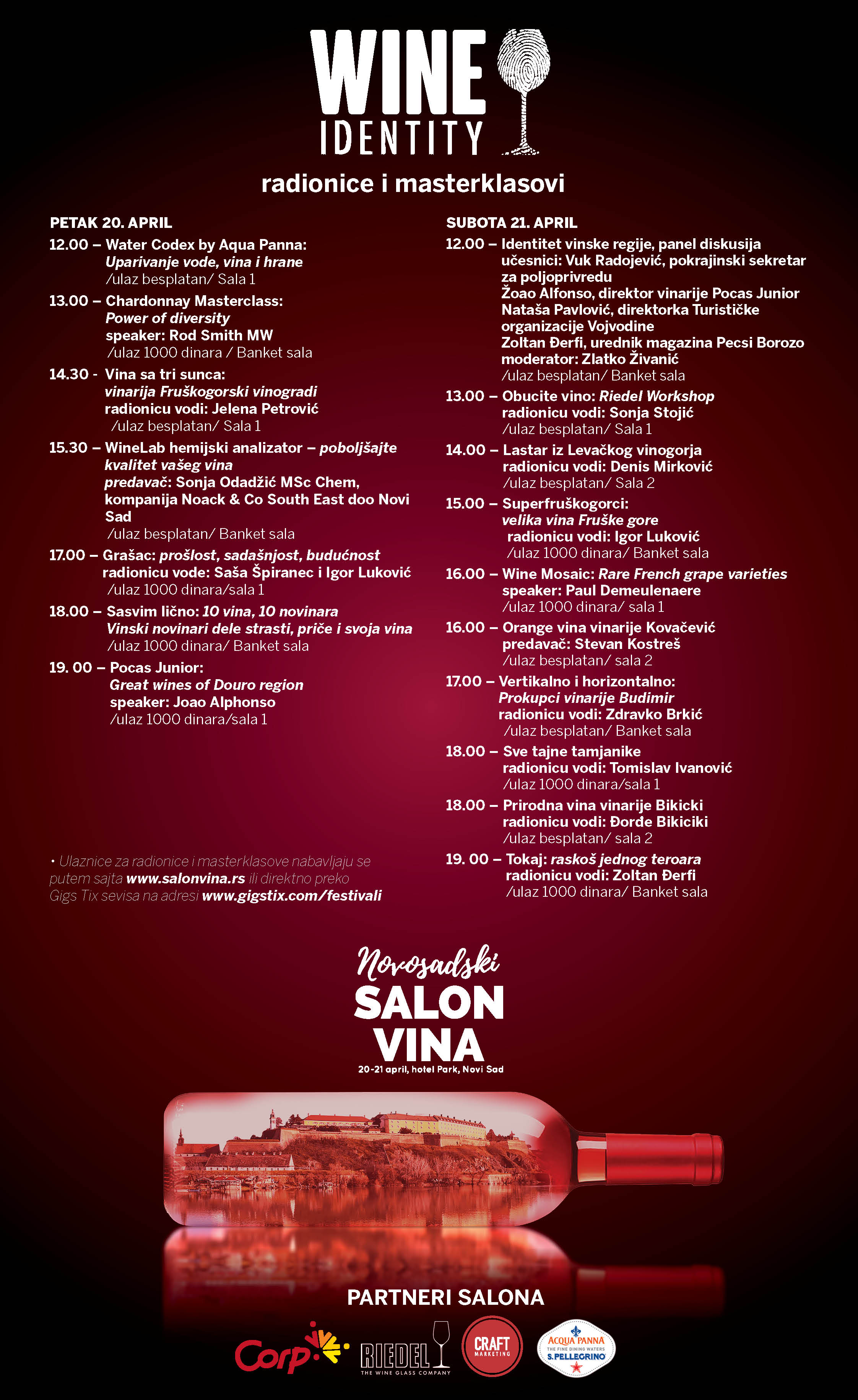 Počelo je odbrojavanje do početka prvog Novosadskog salona vina koji će se održati 20. i 21. aprila u hotelu Park u Novom Sadu, a danas je objavljen detaljan program Salona, sa svim masterklasovima, predavanjima, radionicama i drugim pratećim programima. Organizatori Salona i njihovi ugledni gosti provešće posetioce kroz različite vinske stilove i regije, a ceo program možete pogledati na flajeru Novosadskog salona vina.