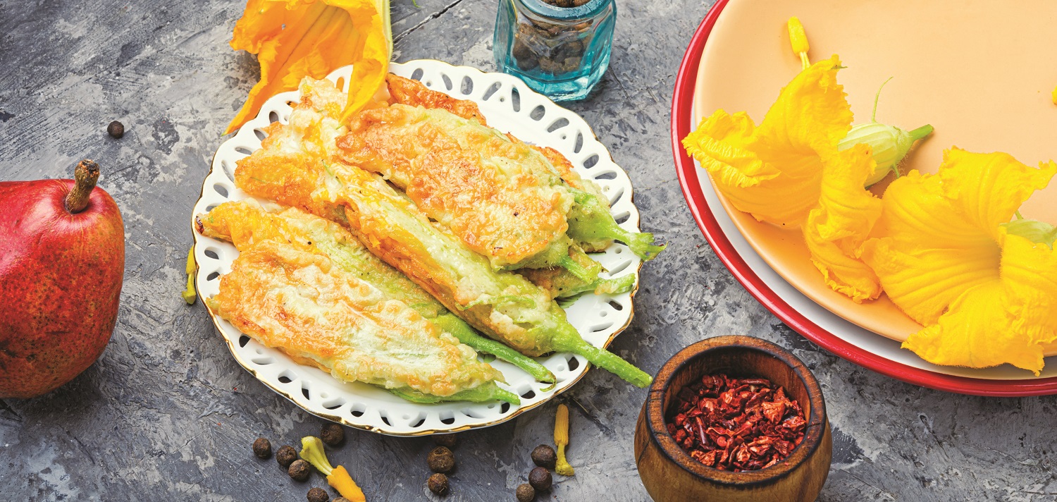 Bilo je teško odoleti iskušenju da odaberemo recepte za neke zaista šarena jela koja uključuju više cvetova i donose pravu eksploziju boja na tanjiru. Posle nešto dužeg razmišljanja, ipak smo se opredelili za nešto jednostavnije: tradicionalni , jednostavni recept za cvetove tikvice, onakve kakvi se prave u seoskim kućama u Italiji, ali i u ponekom restoranu koji neguje jela cucina povera stila, sirotinjske kuhinje zemlje u kojoj se namirnice ne bacaju, već se svemu nalazi primena. Neverovatan kvalitet voća i povrća i gastronomska intuicija Italijana podižu i najjednostavnija i najjeftinija jela na najviši mogući nivo kvaliteta. Fenomenalno ukusni cvetovi tikvice najbolji su primer za cucina povera kuvanje, a recept je dovoljno jednostavan da ga može pratiti apsolutno svako ko ume da uključi ringlu i isprži jaje.