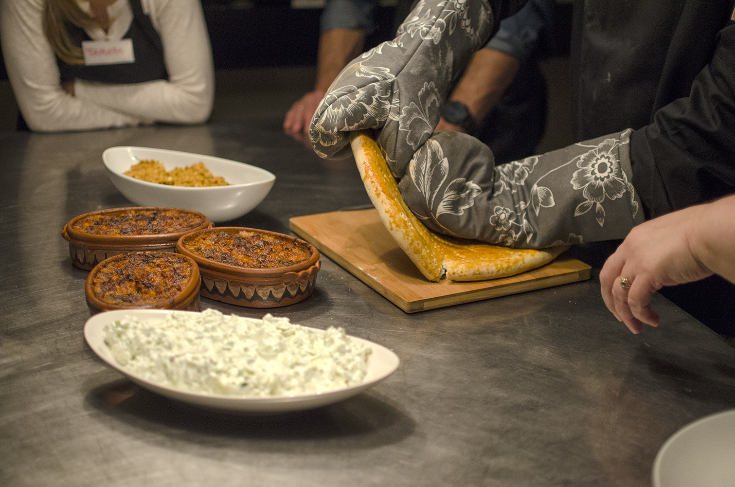 Prvi čas zaista pomalo podseća na početak školske godine, ali za to su odgovorni učenici, malena grupa mahom mladog sveta, ćutljivi i, rekao bih, pomalo stidljivi ljudi. Ambijent već poznajem: ova ušuškana kuća na Autokomandi vrca od hedonističke energije. Počinjemo sa radom. Na tabli su ispisani nazivi jela koja danas pravimo: pogača, prebranac, namaz od čvaraka, salata od praziluka. Sve laka domaća hrana. Mi, kuvarski šegrti, dobijamo pregače sa bedževima koji nose naša imena, i okupljamo se oko velikog kuhinjskog ostrva.