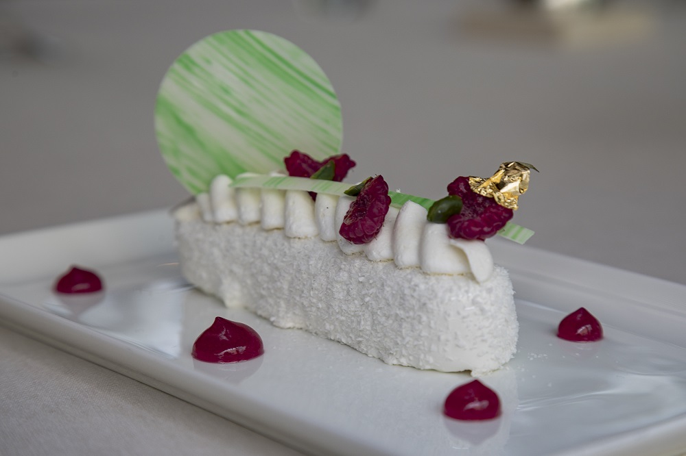 Prvo je stiglo lagano jelo od dimljene pastrmke, avokada i krastavaca, sa prepeličijim jajetom na vrhu, koje strukturom neodoljivo podseća na Valdorf salatu, međutim, potpuno novog ukusa. Lako, hrskavo, uravnoteženo i osvežavajuće, perfektno jelo za topli deo godine. Nakon toga, poslužen je gravlaks, jelo koje ne može biti klasičnije, međutim, ovde izvedeno na potpuno novi način. Slajsovi sočnog lososa, kog Ajkovi kuvari sami mariniraju i dime, ležali su na osvežavajućoj kremi od krastavaca obogaćenoj mirođijom, vlašcem i proprženim kaparima. Odozgo tek malo hrskavog začinskog bilja i tankih kolutova rotkvica. Odlično! Takav je bio i klasični potaž od praziluka i krompira, kom su kavijar i domaći mileram dali novu dimenziju. Usledio je savršeno ispečeni filet brancina, sočan unutra, a hrskav spolja, poslužen na kratko obrađenom povrću, sa intrigantnim komadićima proprženog kulena. Ipak, pratnja je tu služila samo da zagolica čula, dok je riba igrala glavnu ulogu. Završilo se sa dva lagana, ali kompleksna deserta, stilski potpuno na tragu prethodnih jela, a koja potpisuje šef poslastičarnice Zdravko Gavrilović. Slatkiš sa belom čokoladom, kokosom, spekulasom i malinama prizvao je ukus detinjstva, domaćih kolača sa kokosom i rafaelo kuglica, dok je malina razigrala i osvežila ceo doživljaj. Ipak, kolač sa đandujom, Baileys likerom, karamelom i granolom bio je još bolji, ne ostavljajući ravnodušnim nikoga za stolom... Jedva čekamo nastavak!