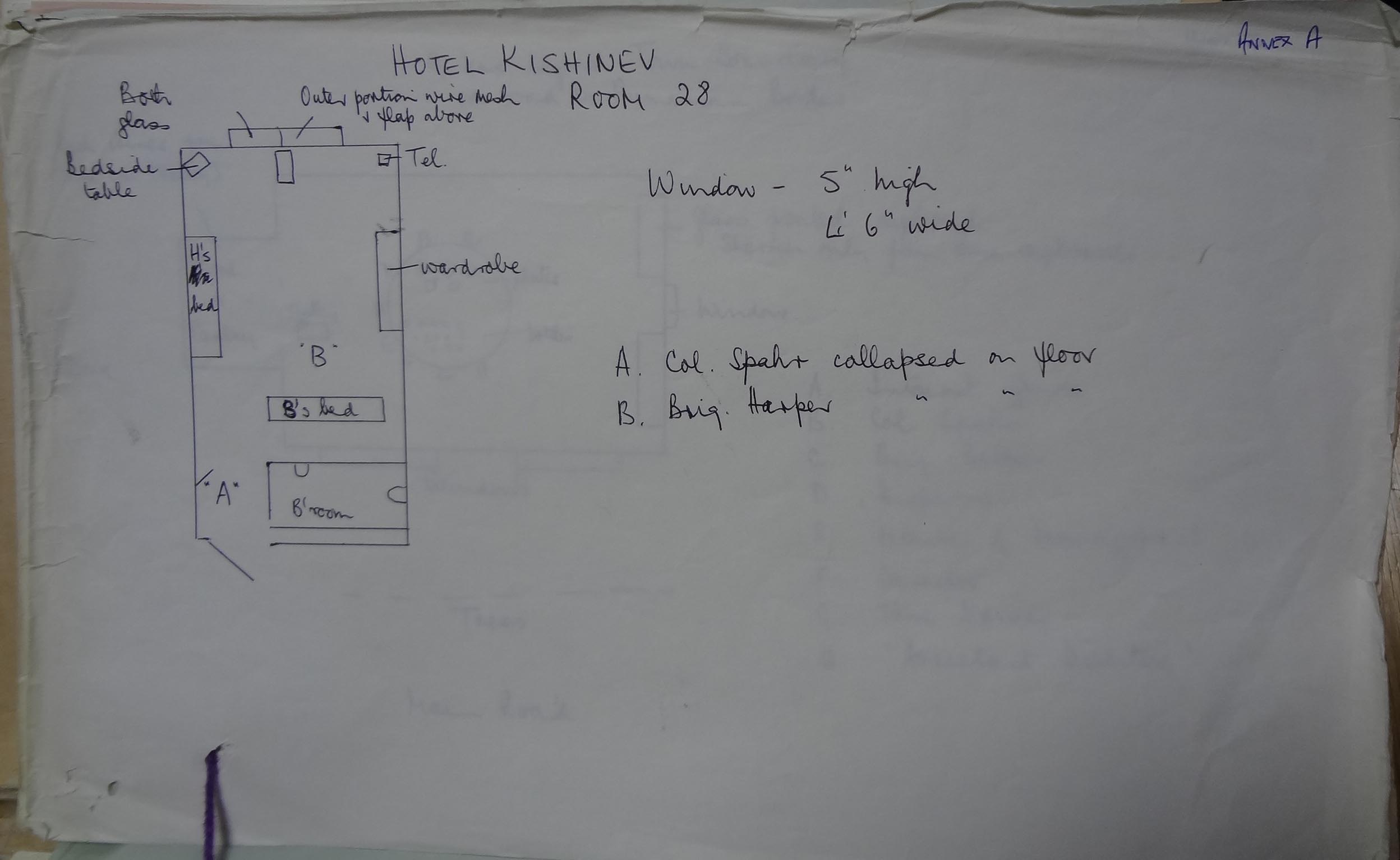 Skica hotelske sobe u kojoj se dogodio incident