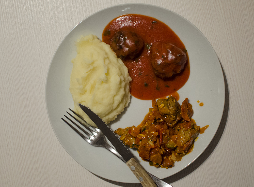 Ipak, prava mesnata zvezda časa bile su ćufte u paradajz sosu. Jelo koje evocira uspomene na popodneva na salašu čak i kod ljudi koji nikada nisu mrdnuli iz solitera. Mekane, u intenzivno crvenom sosu, sa dodatkom pirea od belog krompira, spremljenog sa puno putera. Nastavnik Nebojša Anđelković rekao je da je ovo jelo hit i kod keteringa: