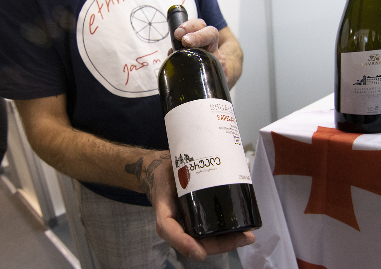 Aleksander Paikidze predstavio je nešto što smo na ovom sajmu BeoWine probali prvi put, i sa izvesnom dozom strahopoštovanja. U pitanju je vino Bruale Saperavi 2017, proizvedeno od čuvene sorte saperavi koja je "napipala" svoj put čak do Amerike i koja se umnogome identifikuje sa gruzijskim vinarstvom. Ovo vino proizvedeno je nadaleko poznatom i drevnom kvevri metodom vinifikacije u velikim glinenim sudovima.