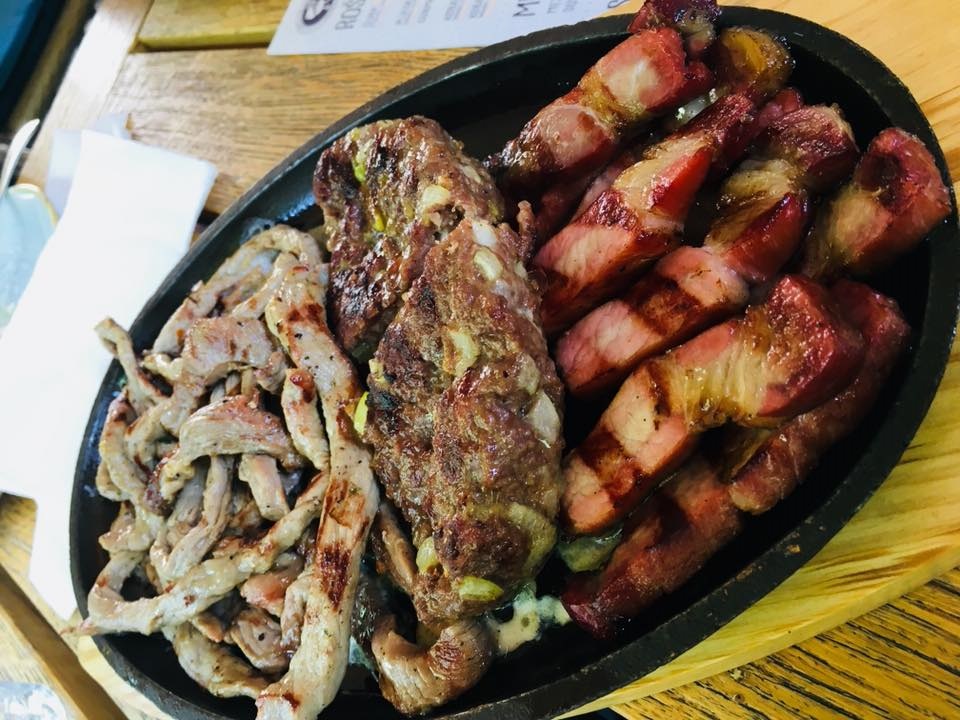 Rolovani pileći ražnjići i punjeno belo meso. Ovde važi ona stara dobra: belo sa belim. E sad, ali kakvo belo? Ako na roštiljsku žicu bacite samo pileći file, tražićete neko lakše, hrskavije, mlado belo vino, međutim, svaka kombinacija u kojoj ima slanine, kačkavalja ili šunke, značajno menja karakteristike belog mesa, čineći ga aromatičnijim, sočnijim i masnijim. Takvo treba da bude i vino, pa je logičan izbor šardone odležao u drvetu. Punoća, alkohol, struktura i slatkaste i zadimljne note iz drveta učiniće svoje. Ako vam je šardone dosadan, tu se možete uhvatiti bilo kog belog vina sličnih karakteristika.
