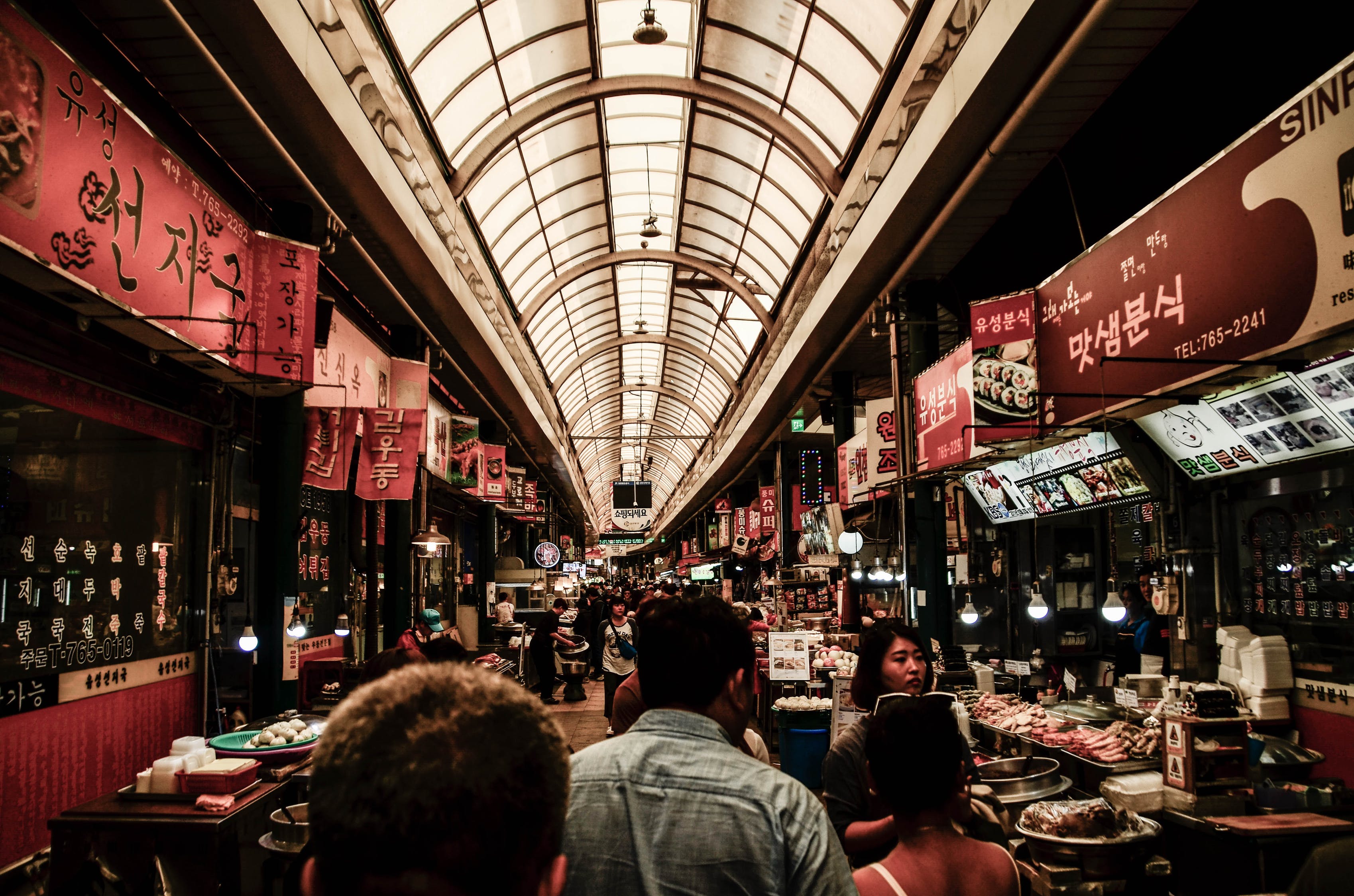 Na pijaci Gvangjang , na kojoj ima 5.000 tezgi, nude se delikatesi kao što su soondae (korejska krvavica) i drugi specijaliteti za ljude hrabrog nepca. U restoranu WooSung Galbi probaćete autentični korejski roštilj, a za nešto viši nivo lokalne hrane - tu je restoran Yeontabal.