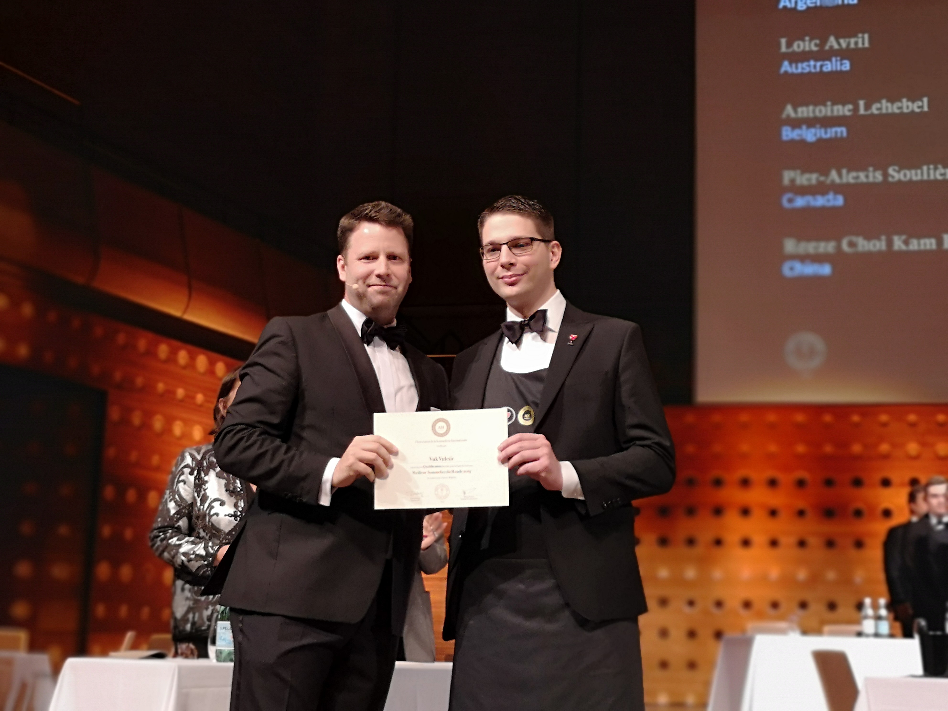 Predstavnik Srbije Vuk Vuletić prima diplomu za učešće na elitnom nadmetanju somelijera