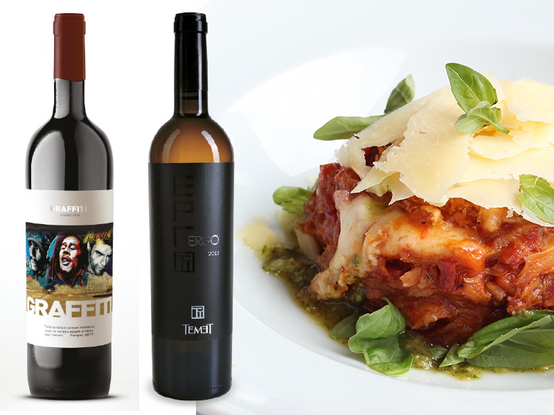 Crveni Graffiti 2013 iz vinarije Bjelica je moćno vino, ali koje ima raskošnu svežinu i veoma živahne kiseline. Uz još uvek mlade tanine, to je odlična kombinacija sa kremastom masnoćom koštane srži i sira kojim ovo jelo obiluje. Baš zbog te svežine, i paradajz iz jela dobiće odličnu pratnju.
