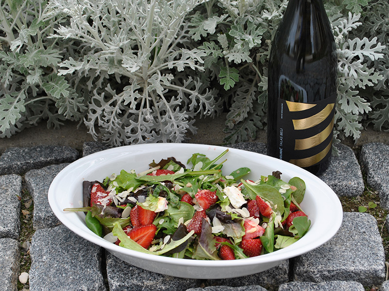 Imao sam dva dana da sve pripremim. Od Zlatka sam u međuvremenu dobio par boca vina: Talas beli, kupažu šardonea i traminca, Talas crveni, kupažu pino noara i merloa, kao i roze napravljen od pino noara. Dobro sam razmislio šta ću praviti i odlučio se za sledeća tri jela. Pošto je bila sezona jagoda, roze sam upario sa salatom od rukole, bejbi spanaća, jagoda, badema, fete i dresingom od meda i senfa.