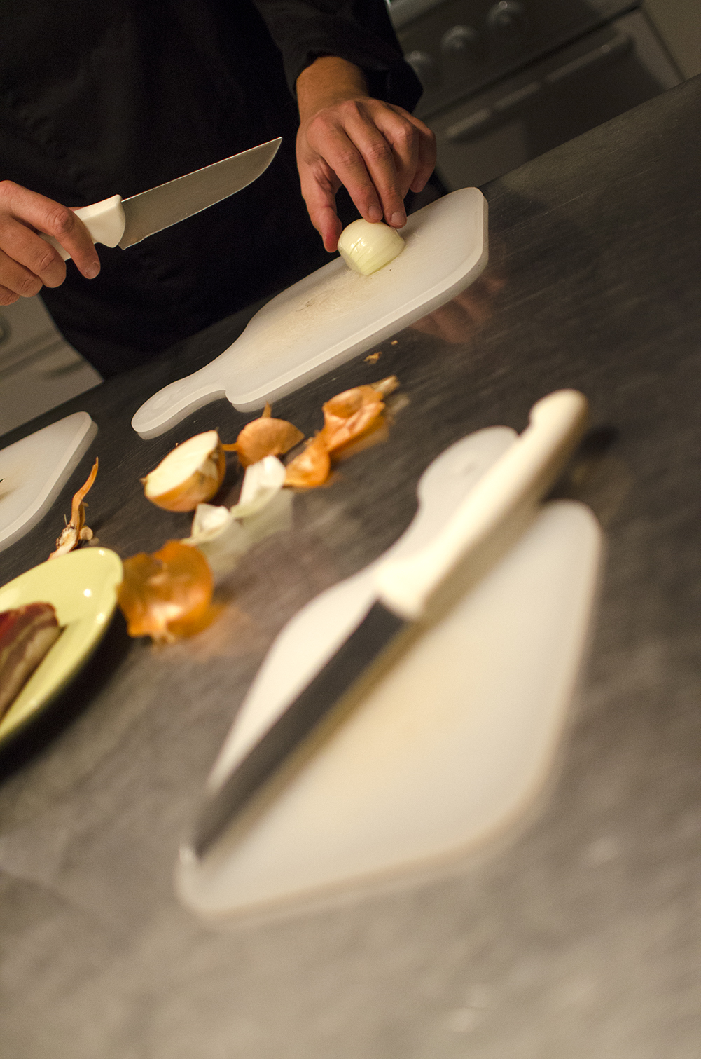 Uprkos mojim neurotičnim zebnjama, sve ide kao po loju. Nakon kratke uvodne reči, pristupamo poslu, a meni je drago zbog toga što pravimo prebranac, jelo koje sam već dva puta uspeo da upropastim. Tokom seckanja i dinstanja luka - svako domaće kuvanje počinje sa seckanjem luka, to smo valjda do sada naučili u "Patinom kuvaru" -počinjem da uviđam kolika je razlika u znanjima između učenika. Jedan polaznik iz Vojvodine kreće se po kuhinji sa ležernošću ugostitelja koji je ovde došao da bi produbio svoja znanja o kuvanju, a dečko naspram njega danas se prvi put susreo sa rečju "dinstanje" i svaki rutinski korak u pripremi hrane za njega je nepoznanica, neobična novotarija u njegovom životu. Zavidim mu jer se pred njim otkriva nepregledno veliki svet, a putovanje počinje jednim zasekom noža.