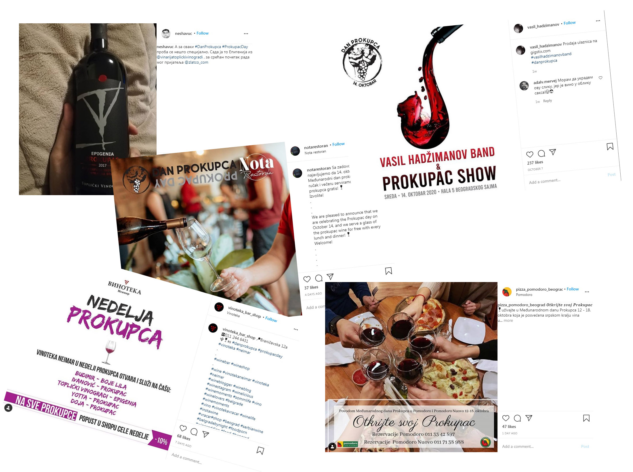 Međunarodni dan prokupca, praznik autohtone srpske sorte vinove loze, obeležen je nizom dešavanja širom Srbije: Karavanom prokupca koji je obišao, po prvi put, Kragujevac i Aleksandrovac, velikom konferencijom Oseti razliku, oseti prokupac održanom u hotelu Radisson Collection u Beogradu, dešavanjem Prokupac Show na Beogradskom sajmu gde je tridesetak vinarija iz Srbije predstavilo svoja vina uz muziku sjajnog Vasil Hadžimanov benda...Prokupac se i dalje slavi u mnogim restoranima, vinotekama i barovima koj tokom čitave nedelje imaju u fokusu vina od naše najčuvenije sorte. Svi ovi događaji odjeknuli su i širom društvenih mreža, pod heštegovima #DanProkupca i #ProkupacDay, a svaki status, svako lajkovanje i deljenje još jedan su maleni korak ka većoj prepoznatljivosti prokupca kao velikog vinskog aduta Srbije.